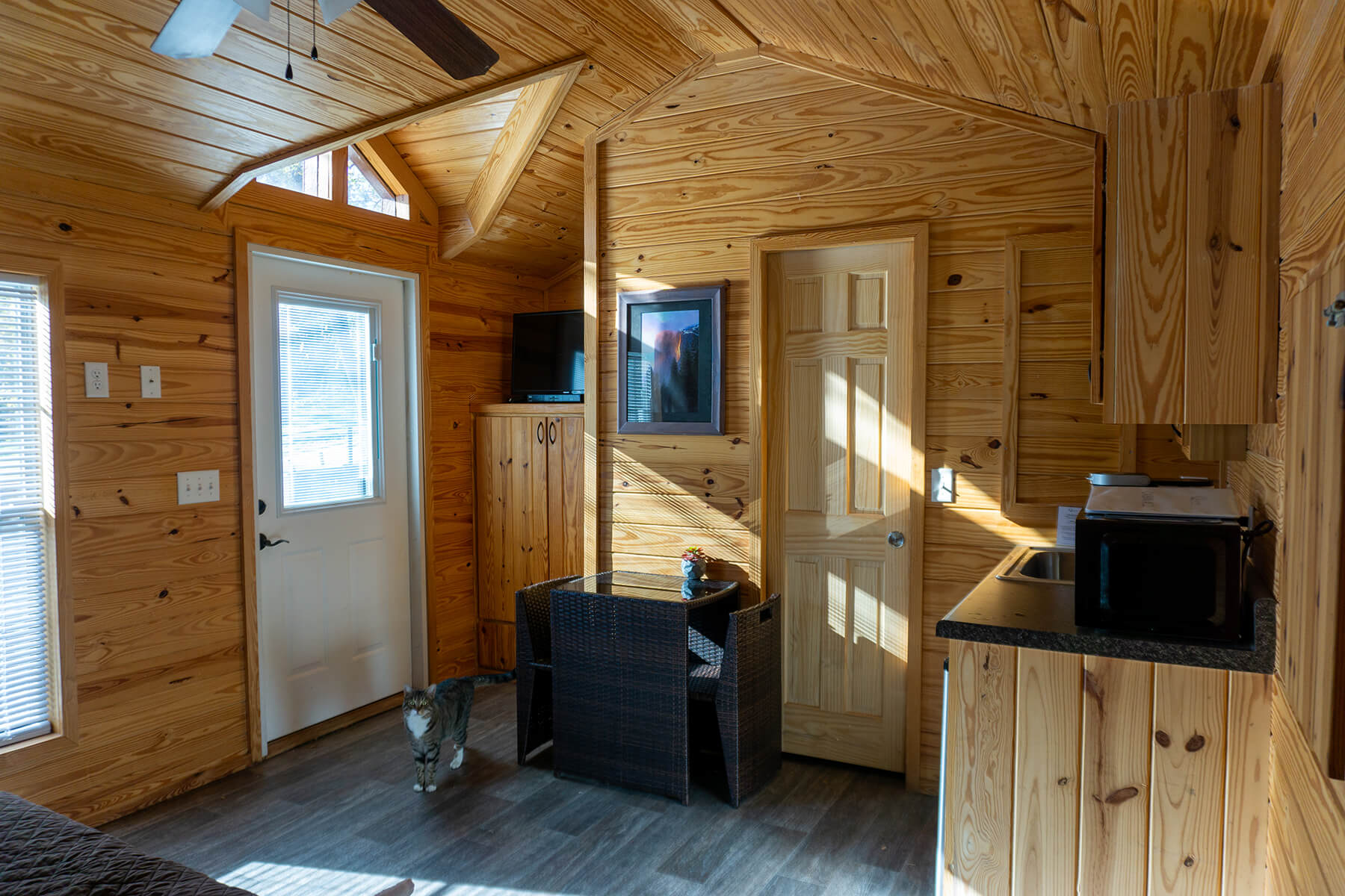 inside a cabin at The Queen's Inn by the River in Oakhurst CA